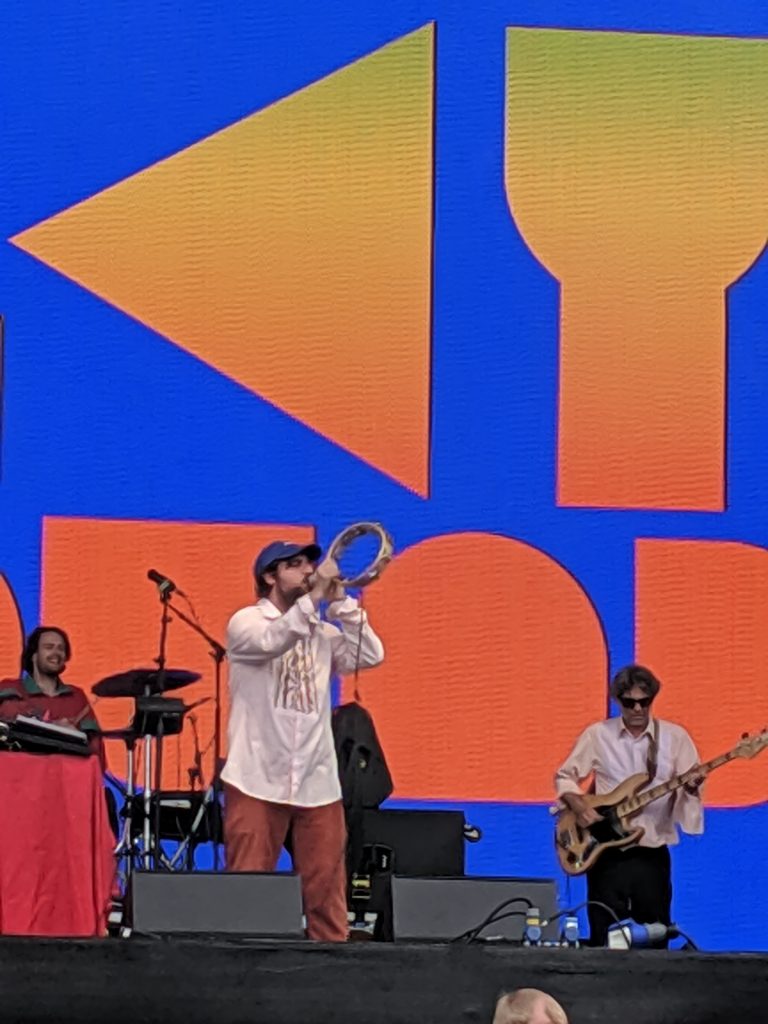 The first two days of the festival had got bad press (poor organisation on first day with hours waiting in beer queues and the second day marred by Lauryn Hill turning up very late – who’d have guessed? – and playing a very short set to disgruntled, booing punters) and this, the third day, was predicted thunderstorms and heavy rain. But instead today we were blessed with wonderful weather, good organisation, happy crowds, and fantastic music – a perfect festival day.